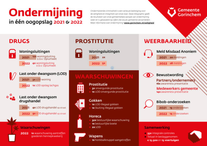 - Binnen de aanpak van ondermijnende criminaliteit streeft de gemeente naar het creëren van een veilig ondernemersklimaat. Wil de gemeente voorkomen dat jongeren in de criminaliteit terecht komen. Ook wordt ingezet op het tegengaan van mensenhandel.