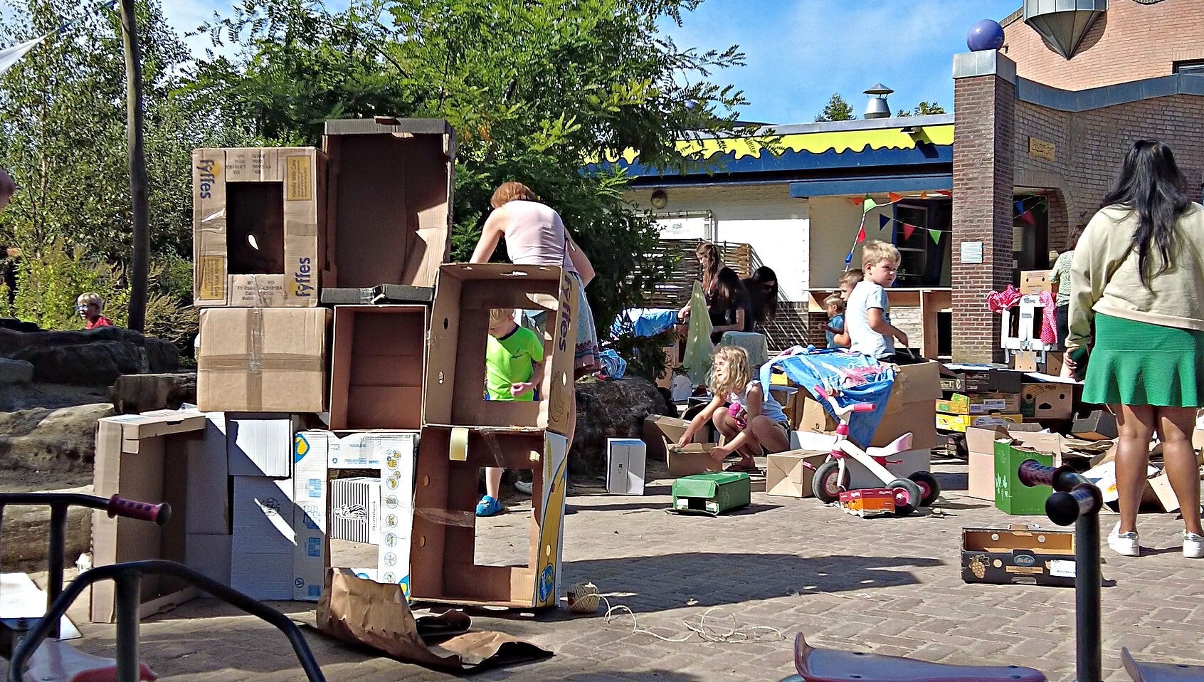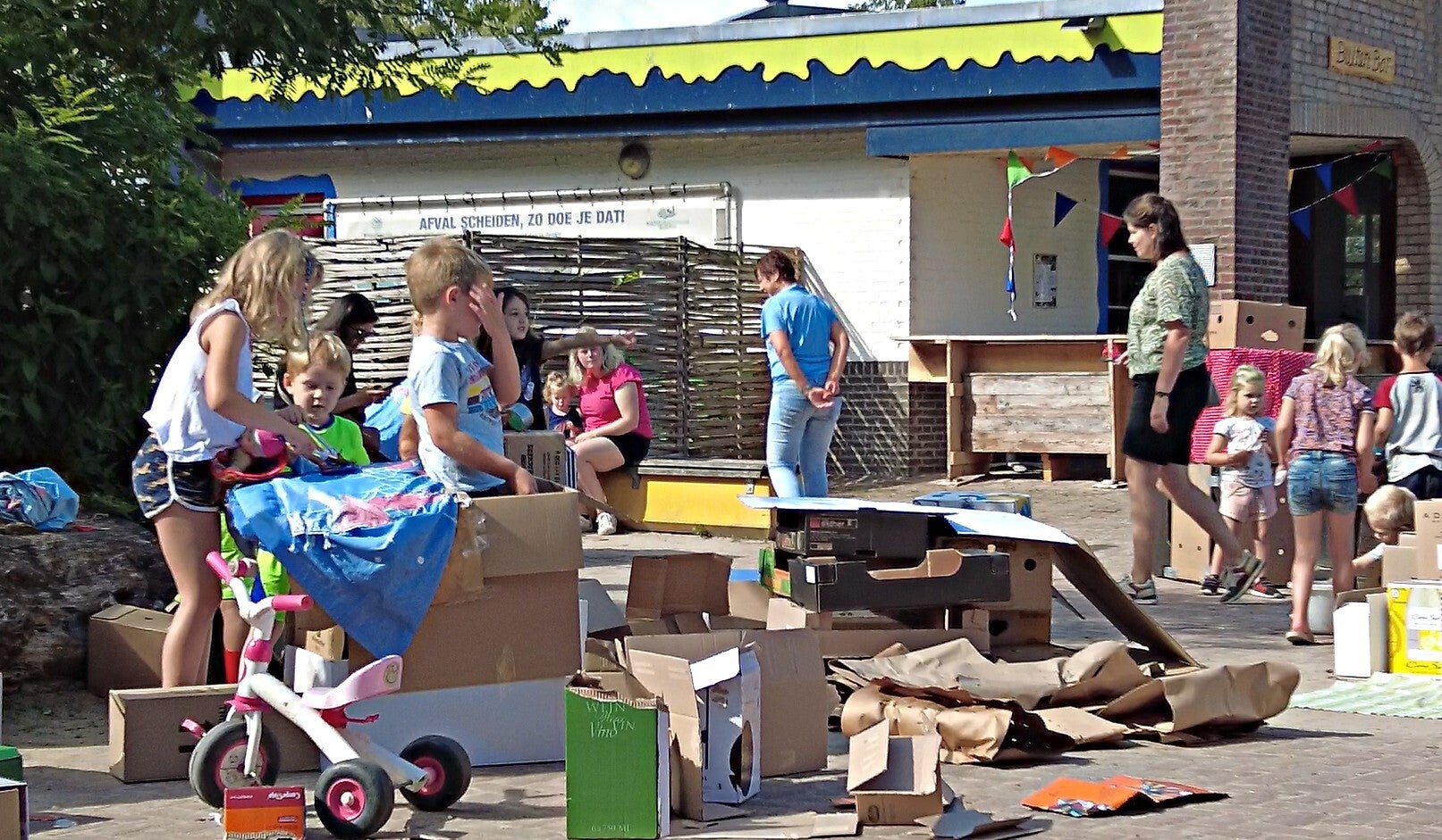 Met bouwkunst als hun superkracht en enthousiasme als brandstof, was het resultaat onvermijdelijk: een verbluffend en kolossaal bouwsel! Maar liefst 35 peuters gooiden zich met volle overgave in de constructie van hun kartonnen onderkomens.