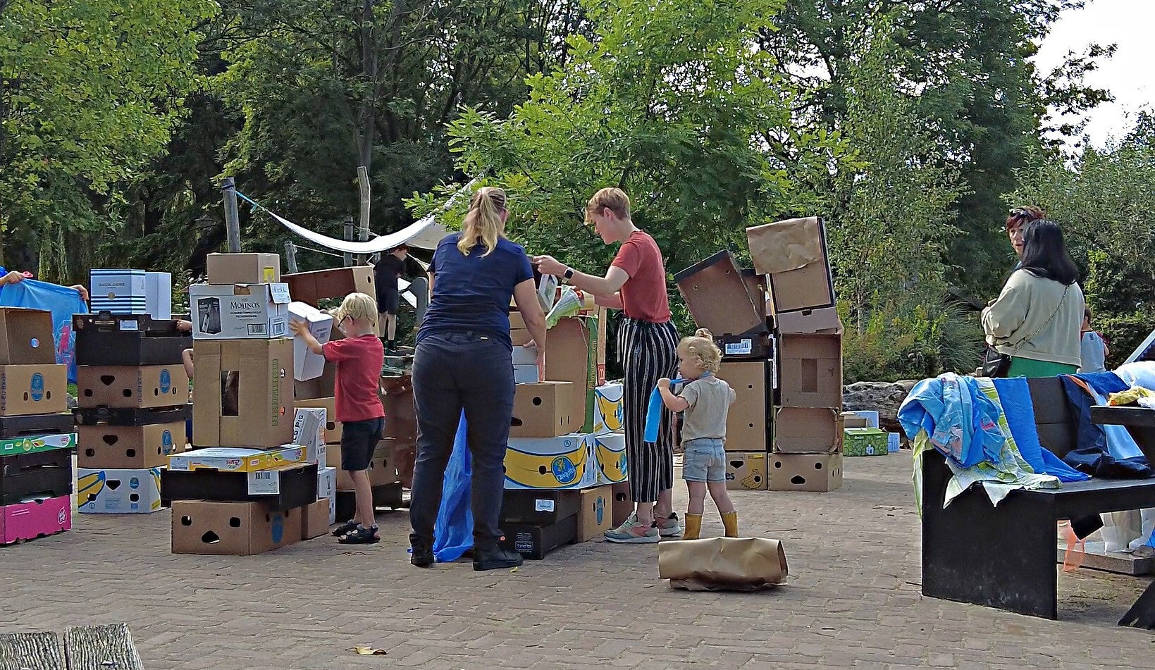 Op woensdag 16 augustus van waren ouders en kinderen van het PeuterCafé uit de binnenstad en de Ouder Kind Inloop uit de Haarwijk van harte welkom op het Natuurcentrum. Hun missie: hutten bouwen! Met kartonnen dozen als bouwmateriaal, of voor de ambitieuzeren onder hen, het neerzetten van een grandioos kasteel.