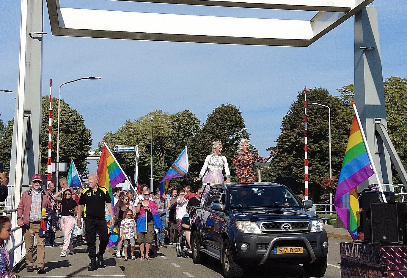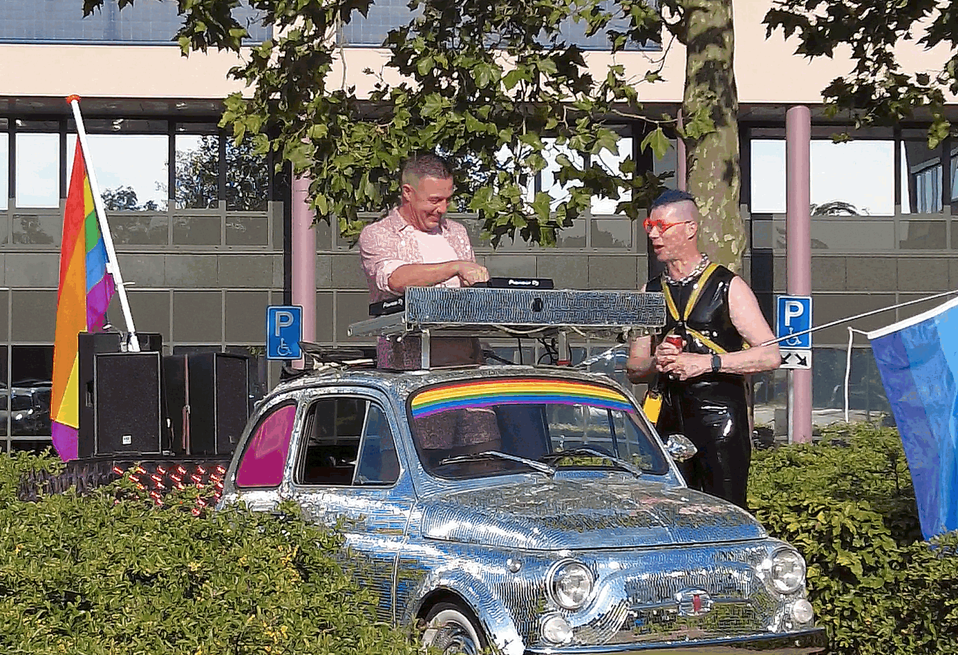 Opvallend in de optocht was de aanwezigheid van een DJ met een zilveren Fiat en een aanhanger beplakt met CD's, die voor de muzikale sfeer zorgde. Deze rijdende disco maakte deel uit van de Pride March, gevolgd door een auto met twee indrukwekkende Drag Queens, die de aandacht van het winkelend publiek in de binnenstad trokken en voor enige verrassing zorgden.