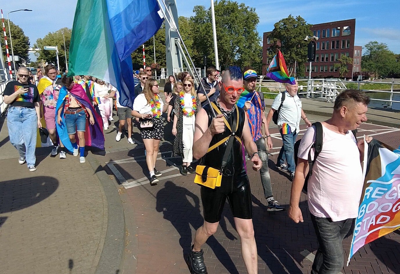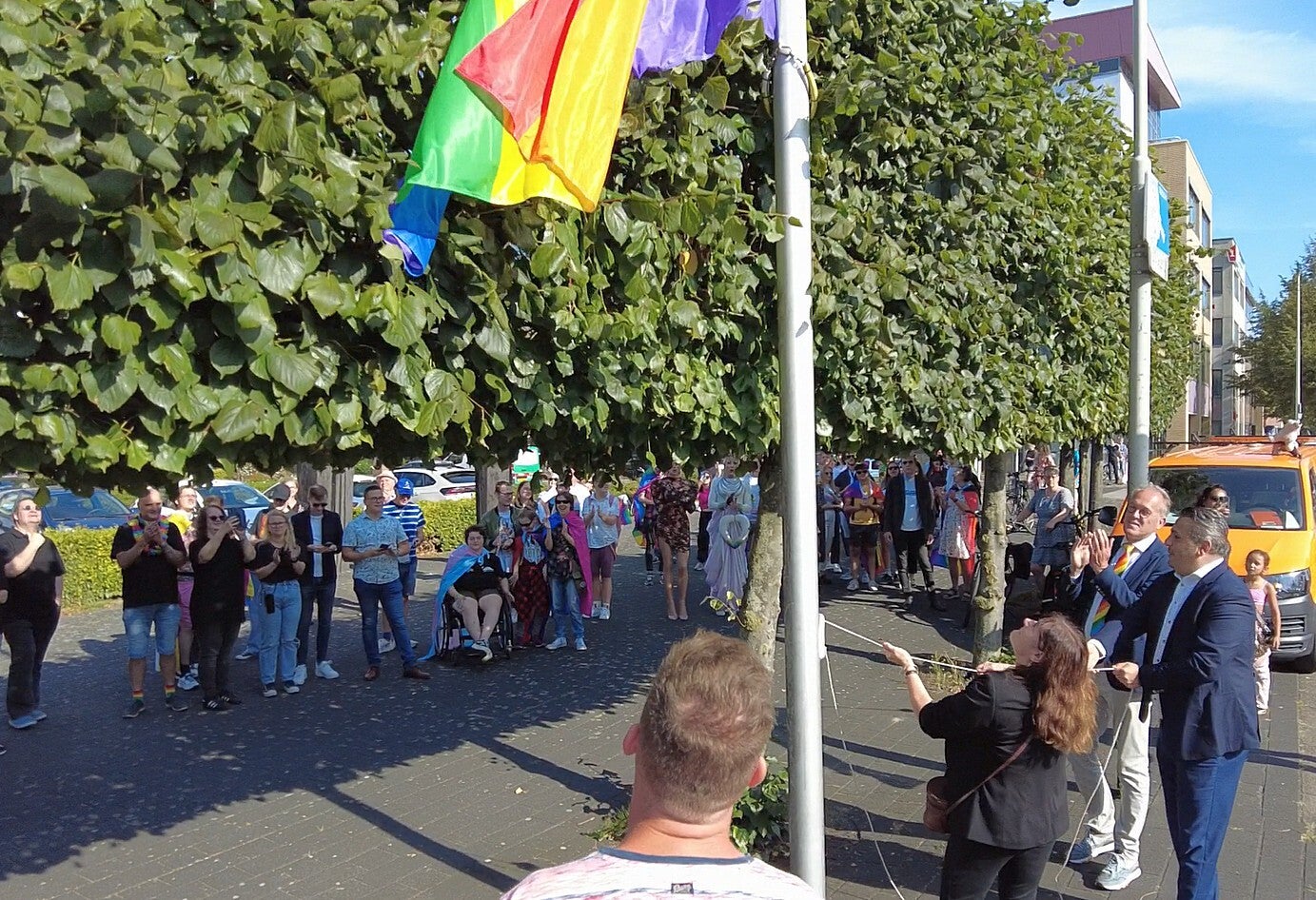 Voor het stadhuis hesen de wethouders Eva Dansen en Fatih Polatli de Regenboogvlag, waarmee de officiële start van de Pride March werd gemarkeerd. Burgemeester Reinie Melissant was niet aanwezig bij deze gelegenheid, maar toonde haar belangstelling tijdens de Drag-verkiezing aan de Dalenwal.