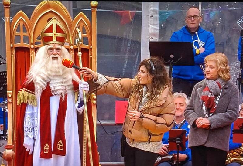 Sinterklaas is zojuist binnengekomen in Gorinchem. Maakte een rijtoer door de stad en is nu op de Groenmarkt.