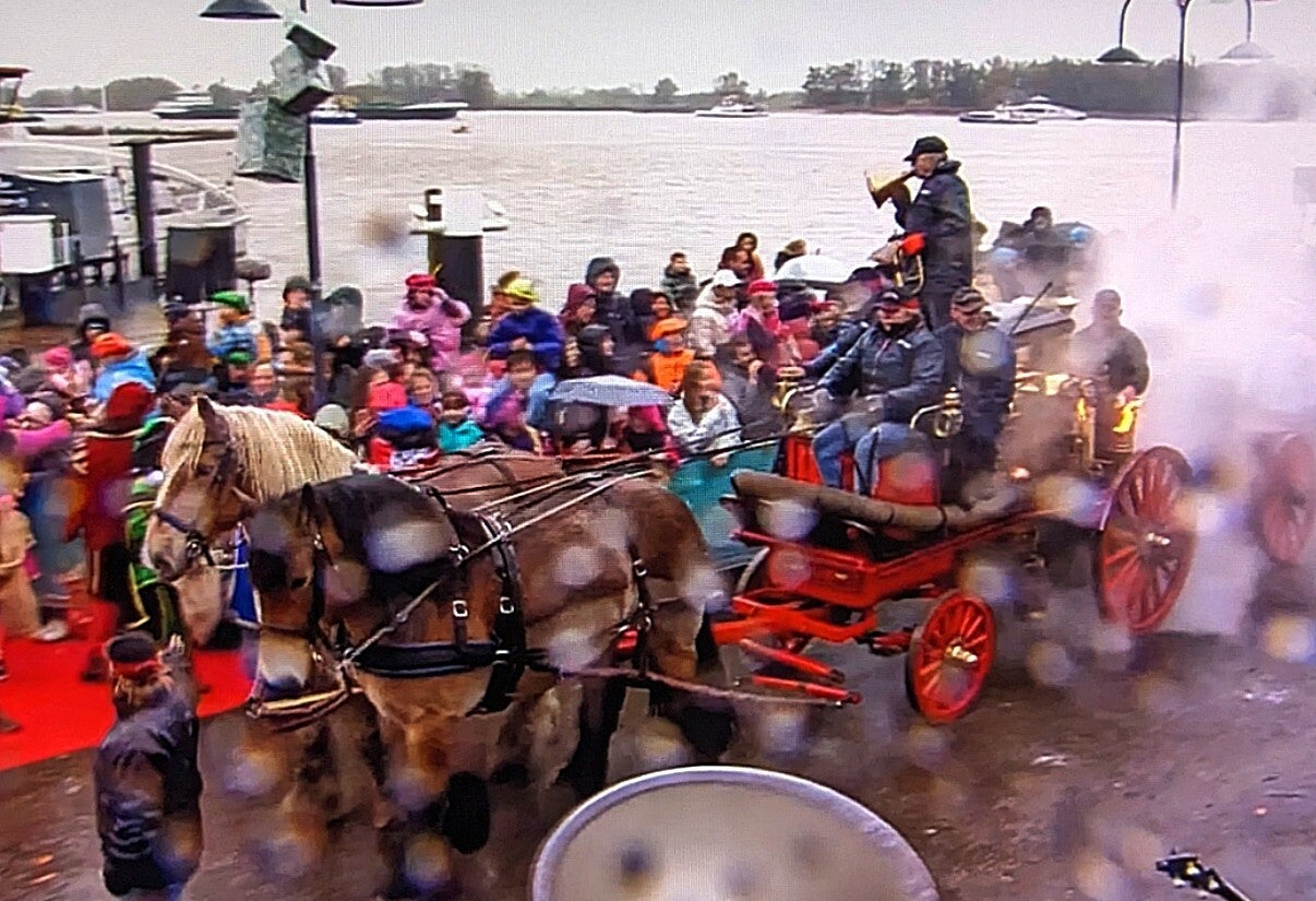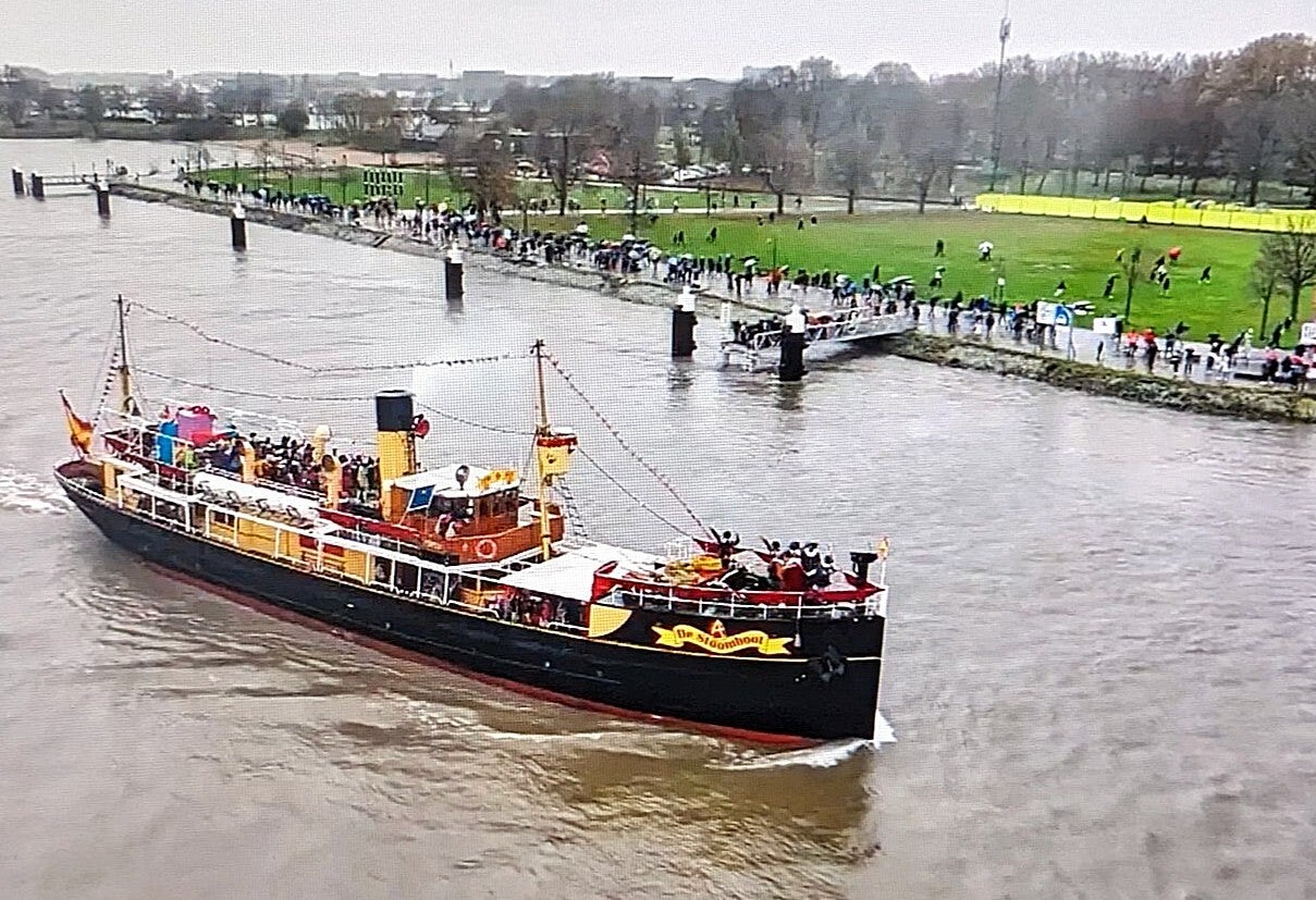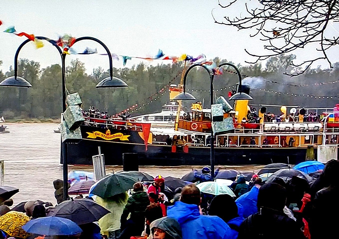 Hoewel aanvankelijk niet zeker was of de Sint zou aanmeren in Gorinchem, kwam het verlossende moment toen de stoomboot uiteindelijk aanmeerde bij de steiger van Riveer Buiten de Waterpoort. Aangetrokken door het luide gezang van de Zangwerkplaats o.l.v. Helga Buitelaar. Een beetje spanning ontstond toen enkele Pieten nog terug moesten varen omdat alle cadeautjes nog in Slot Loevestein lagen, maar gelukkig kwam alles op tijd op zijn plek.