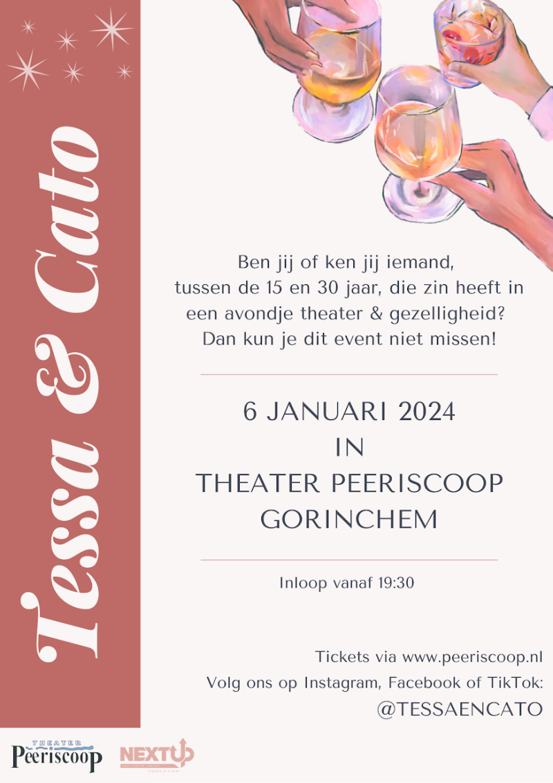 *)Tessa en Cato zetten zich vrijwillig in om dit evenement te promoten via social media, waaronder Instagram, TikTok en Facebook (@tessaencato). Ticketverkoopinformatie is ook beschikbaar op Instagram.